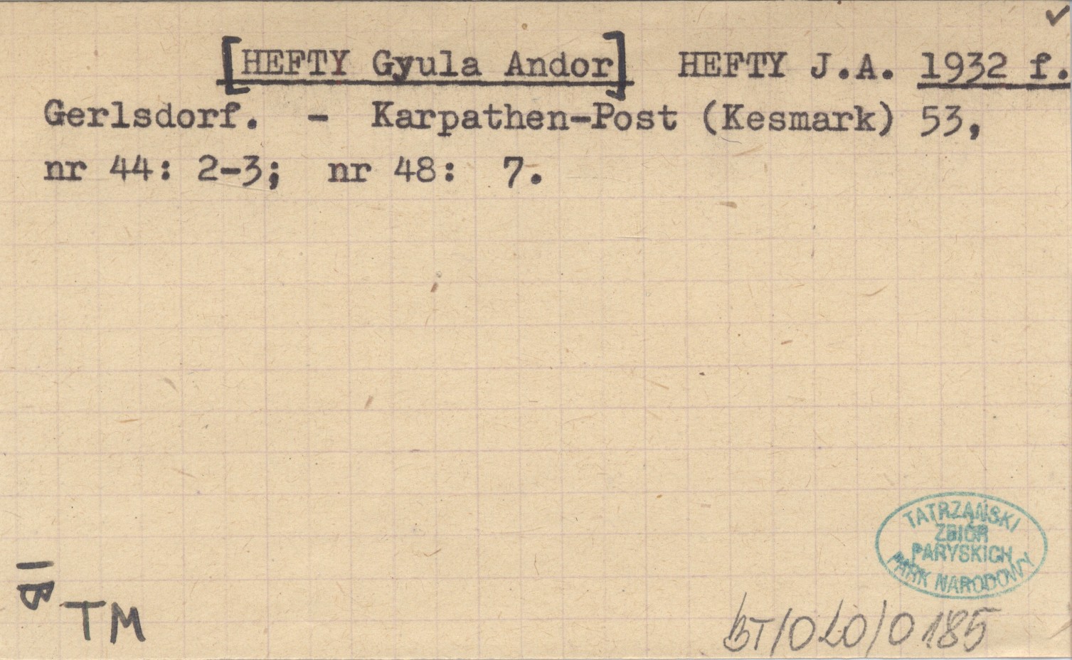 Karpathen-Post (Kesmark) , 53, nr 44: 2-3; nr 48: 7.