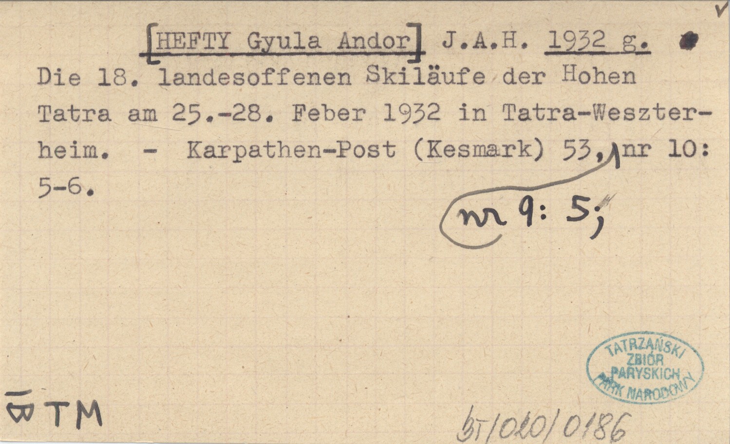 J. A. H. [HEFTY Gyula Andor] 1932 g Die 18. landesoffenen Skiläufe der Hohen Tatra am 25.-28. Feber 1932 in Tatra-Weszterheim.