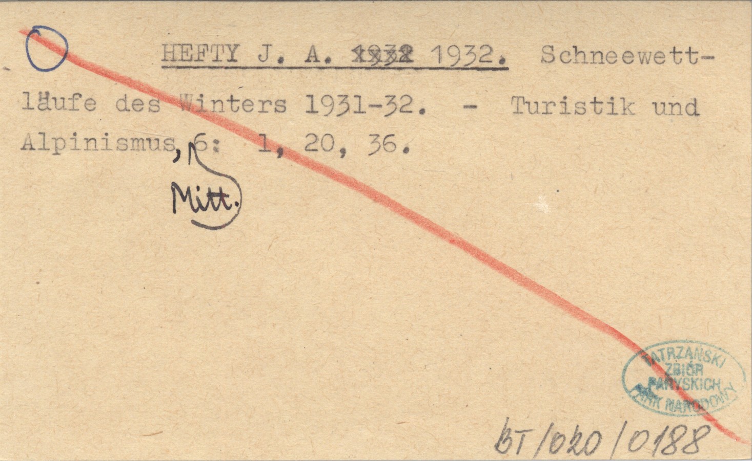 HEFTY J. A. 1932 Schneewettläufe des Winters 1931-32.