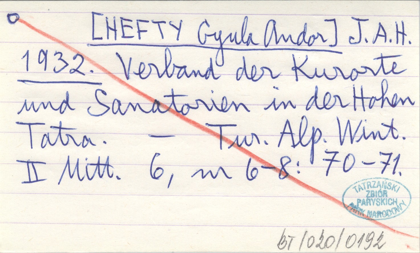 J. A. H. [HEFTY Gyula Andor] 1932 Verband der Kurorte und Sanatorien in der Hohen Tatra.