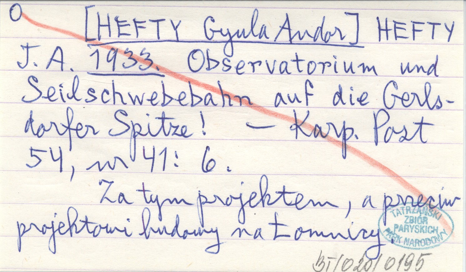 HEFTY J. A. [HEFTY Gyula Andor] 1933 Observatorium und Seilschwebebahn auf die Gerlsdorfer Spitze!