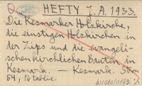 HEFTY J. A. 1933 Die Kesmarker Holzkirche, die einstigen Holzkirchen in der Zips und die evangelischen kirchlichen Bauten in Kesmark.