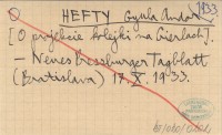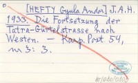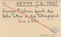HEFTY J. A. 1933? Kurzer Führer durch die Hohe Tatra u. die Tatragegend.