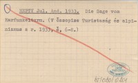HEFTY Jul. And. 1933 Die Sage vom Karfunkelturm. (V časopise Turistaság és alpinizmus z r. 1933, č. 6-8.).