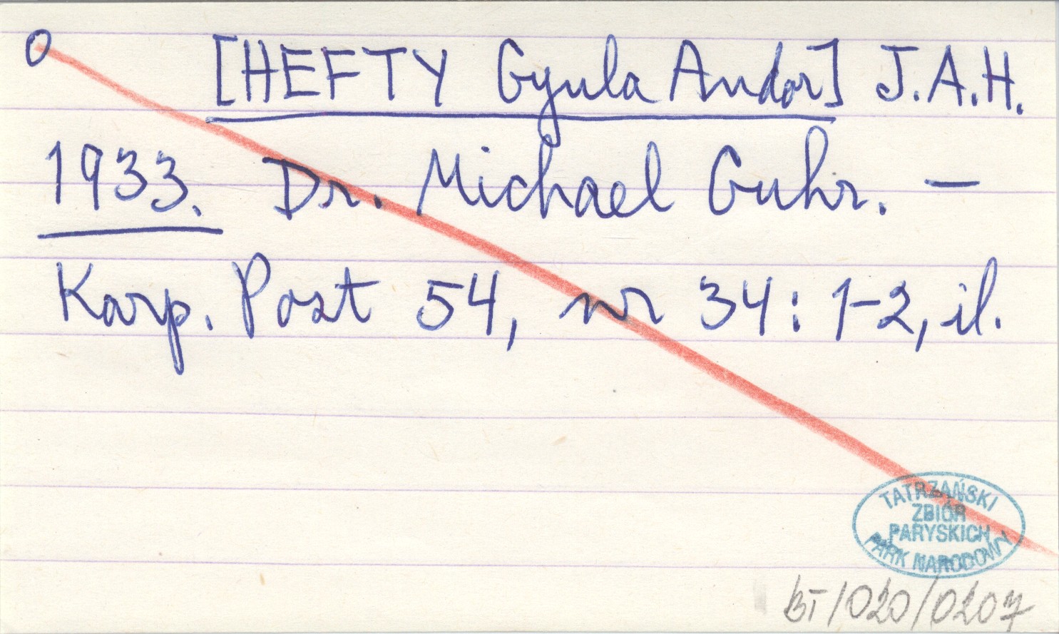 J. A. H. [HEFTY Gyula Andor] 1933 Dr. Michael Guhr.