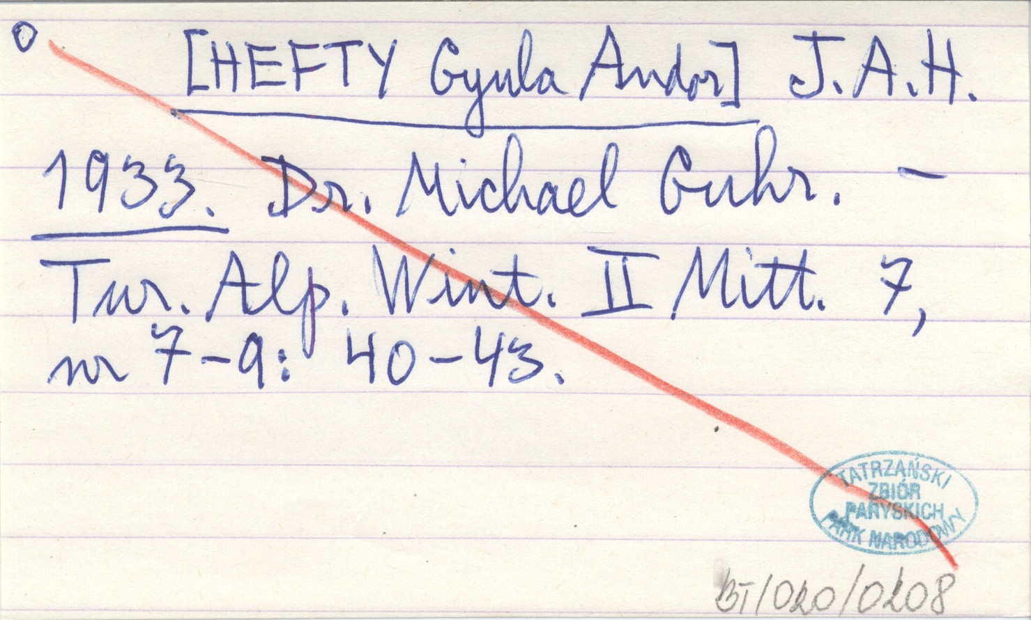 J. A. H. [HEFTY Gyula Andor] 1933 Dr. Michael Guhr.