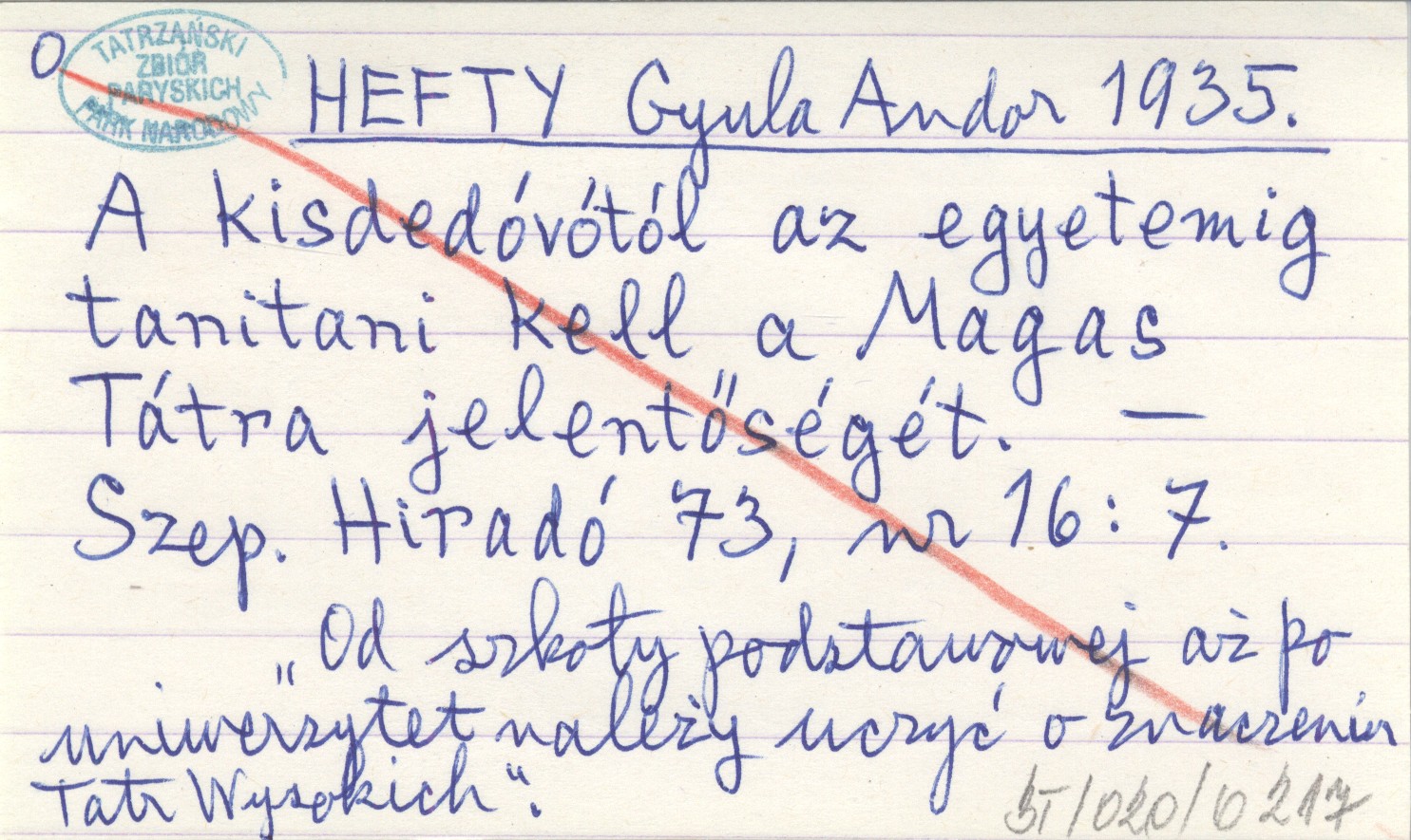 HEFTY Gyula Andor 1935 A kisdedóvótól az egyetemig tanitani kell a Magas Tátra jelentőségét.