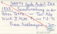 J. A. H. [HEFTY Gyula Andor] 1933 Seenforschung in der Hohen Tatra.