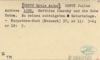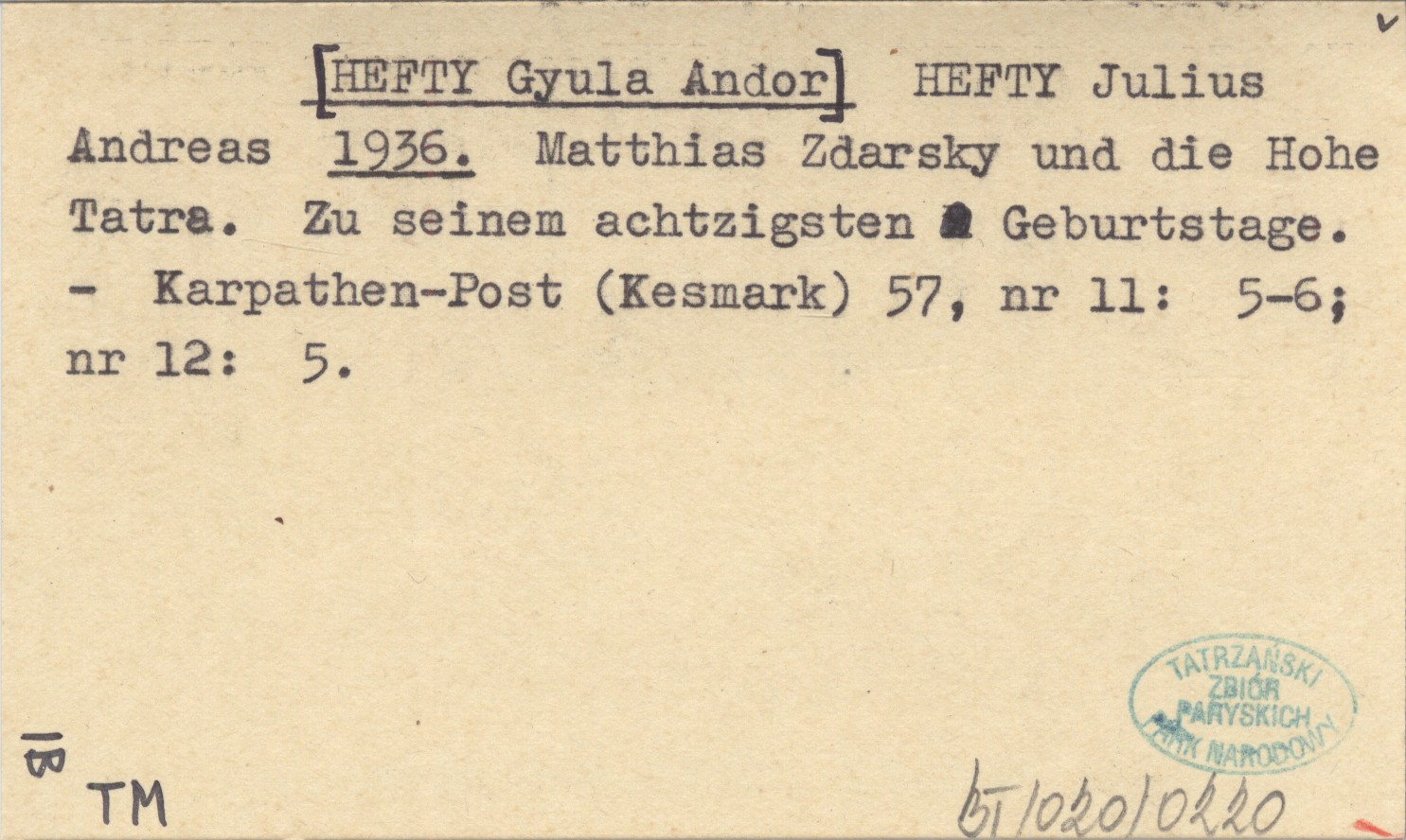 HEFTY Julius Andreas [HEFTY Gyula Andor] 1936 Matthias Zdarsky und die Hohe Tatra. Zu seinem achtigsten Geburtstage.