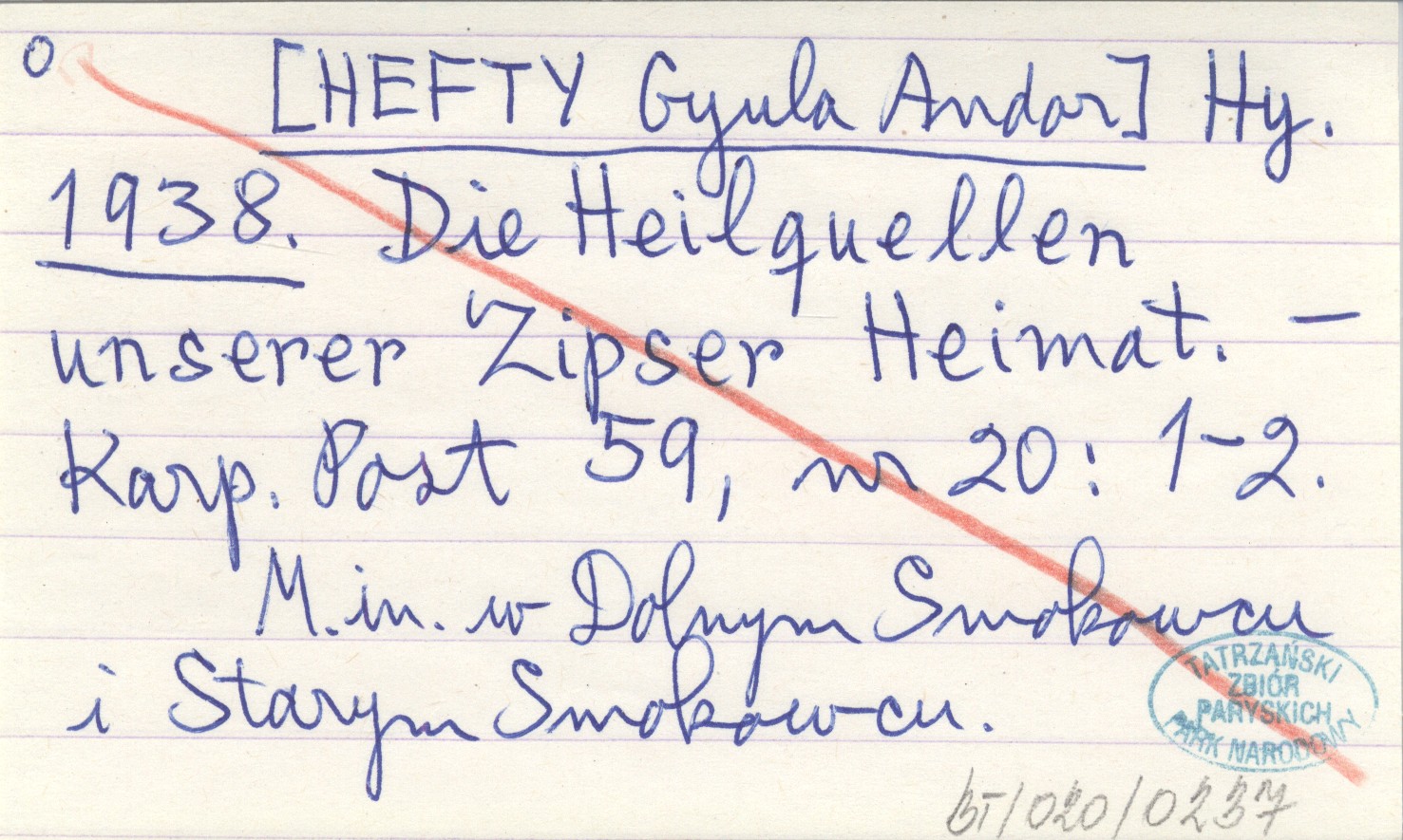 Hy. [HEFTY Gyula Andor] 1938 Die Heilguellen unserer Zipser Heimat.