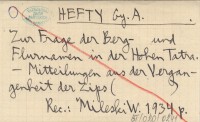 HEFTY Gy. A. Zur Frage der Berg- und Flurnamen in der Hohen Tatra.