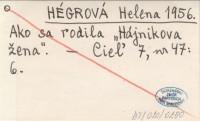 HÉGROVÁ Helena 1956 Ako sa rodila "Hájnikova žena".