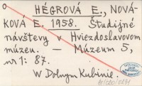 HÉGROVÁ-NOVÁKOVÁ Elena 1959 Rok 1958 v Múzeu P.O. Hviezdoslava.