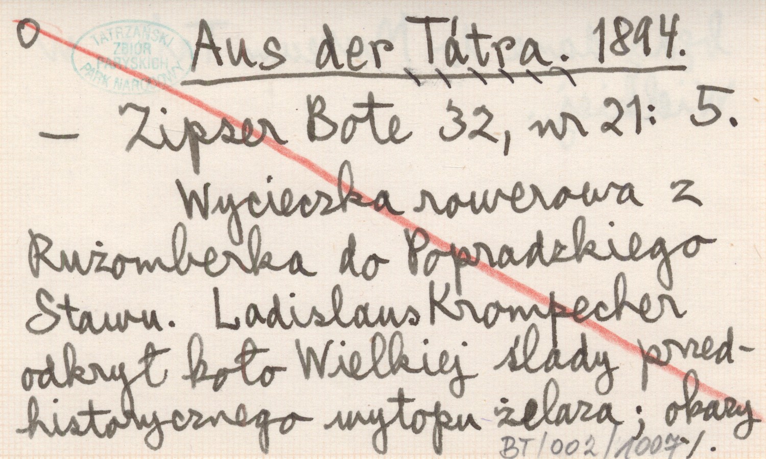 Zipser Bote, 32, nr 21: 5. Wycieczka rowerowa z Rużomberka do Popradzkiego Stawu. Ladislaus Krompecher odkrył koło Wielkiej ślady przedhistorycznego wytopu żelaza ; okazy będą dane do Muzeum Tatrz. w Wielkiej.