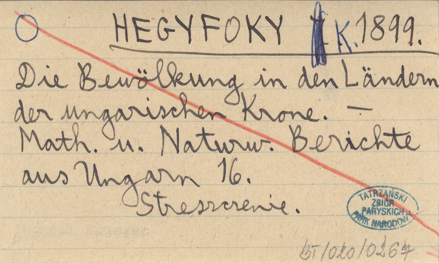 HEGYFOKY K. 1899 Die Bewölkung in den Ländern der ungarischen Krone.