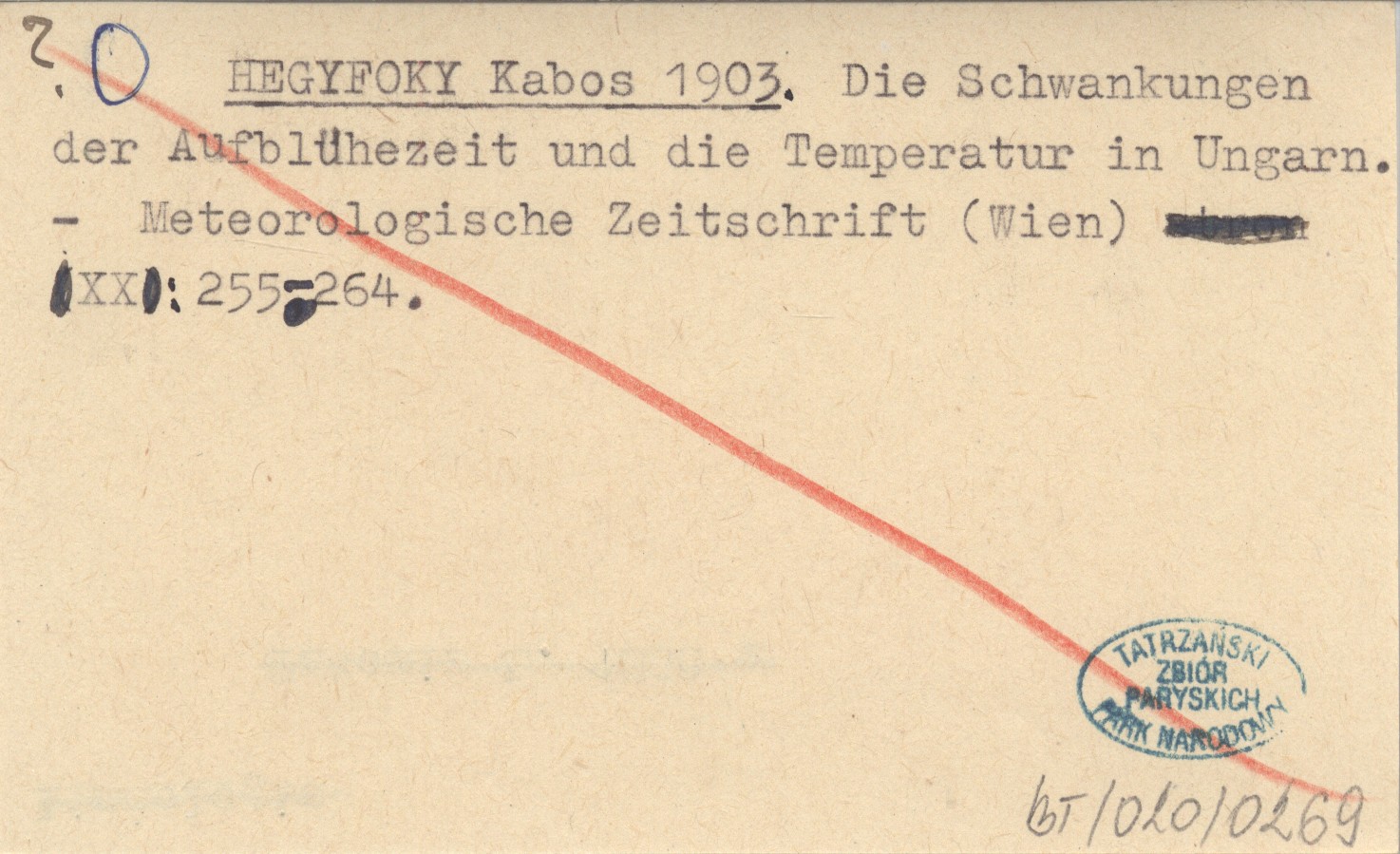 HEGYFOKY Kabos 1903 Die Schwankungen der Aufblühezeit und die Temperatur in Ungarn.