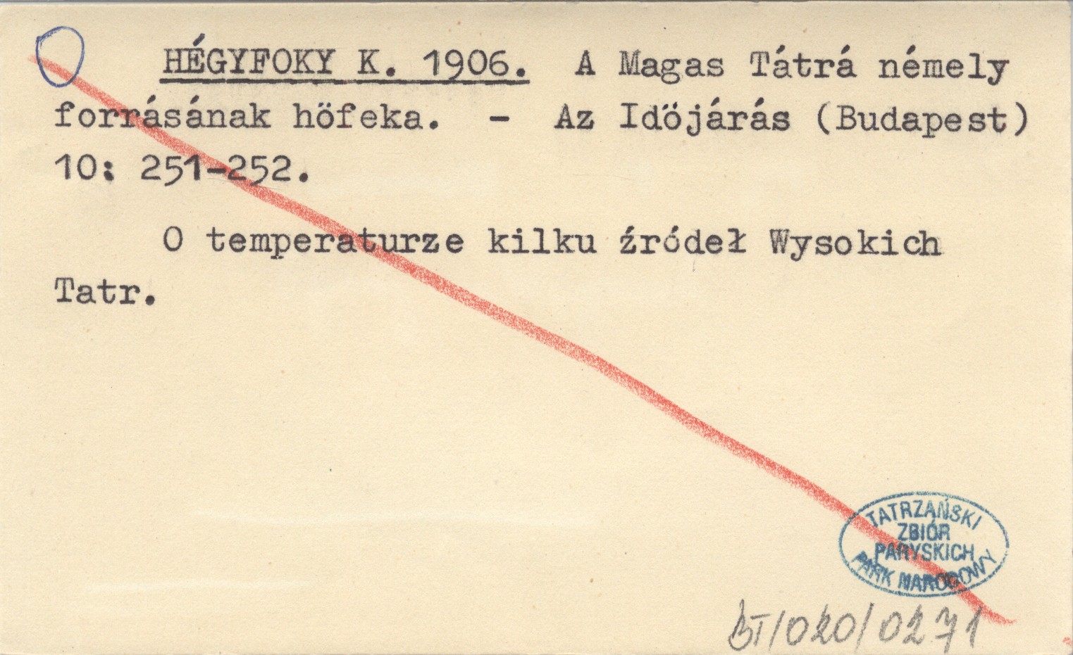 Az Idõjárás (Budapest) , 10: 251-252. O temperaturze kilku ¼róde³ Wysokich Tatr.