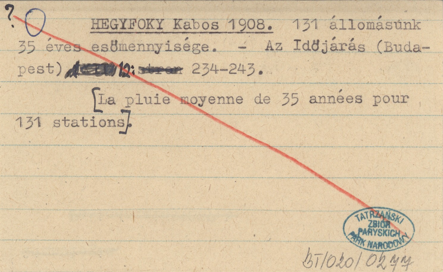 HEGYFOKY Kabos 1908 131 állomásunk 35 éves esömennyisége.