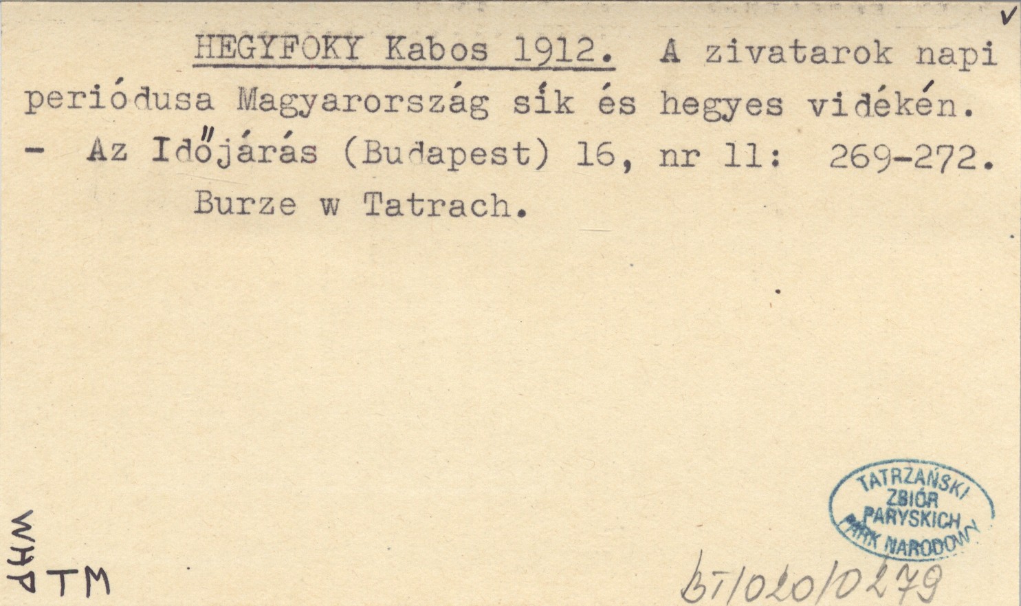HEGYFOKY Kabos 1912 A zivatarok napi periódusa Magyarország sík és hegyes vidékén.