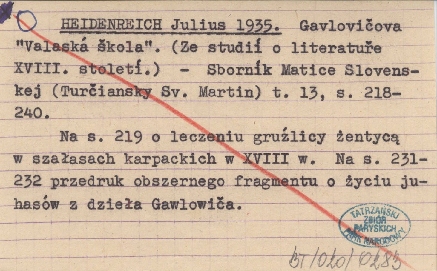 HEIDENREICH Julius 1935 Gavlovičova "Valská škola". (Ze studií o literatuře XVIII. století).