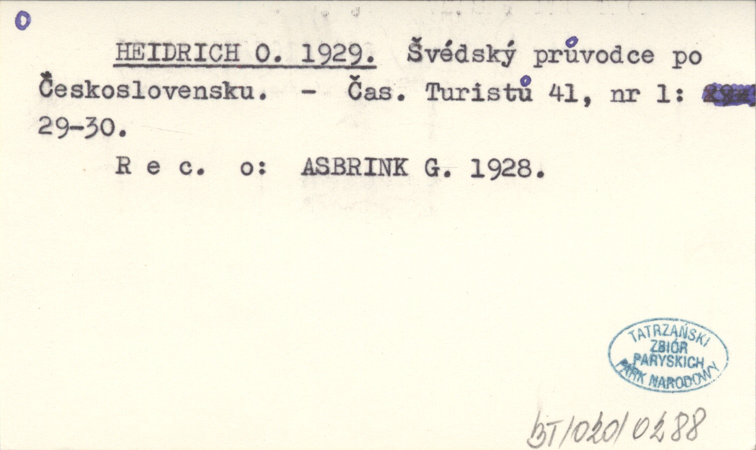 Časopis Turistů, 41, nr 1: 29-30. Rec. o: ASBRINK G. 1928.