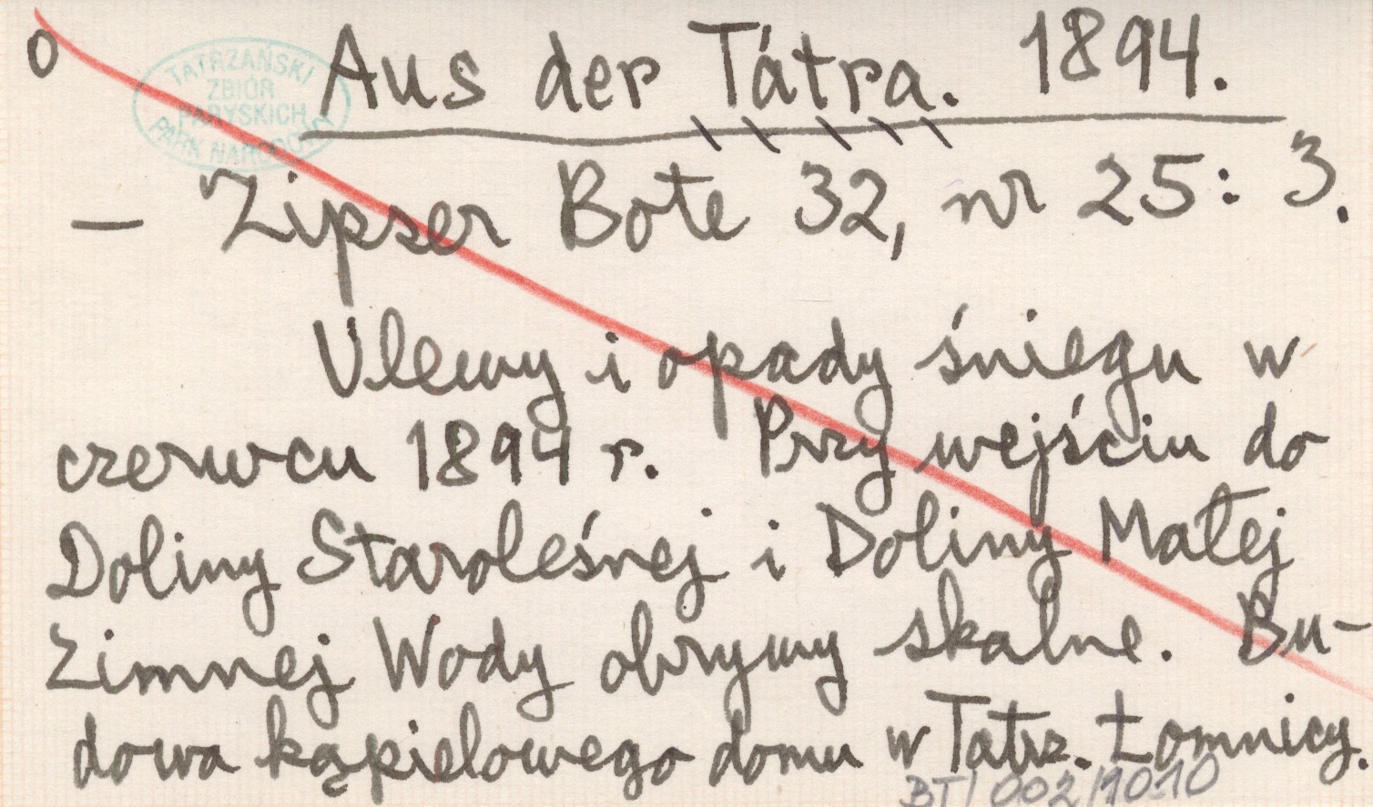 Zipser Bote, 32, nr 25: 3. Ulewy i opady śniegu w czerwcu 1894 r. Przy wejściu do Doliny Staroleśnej i Doliny Małej Zimnej Wody obrywy skalne. Budowa kąpielowego domu w Tatrz. Łomnicy.