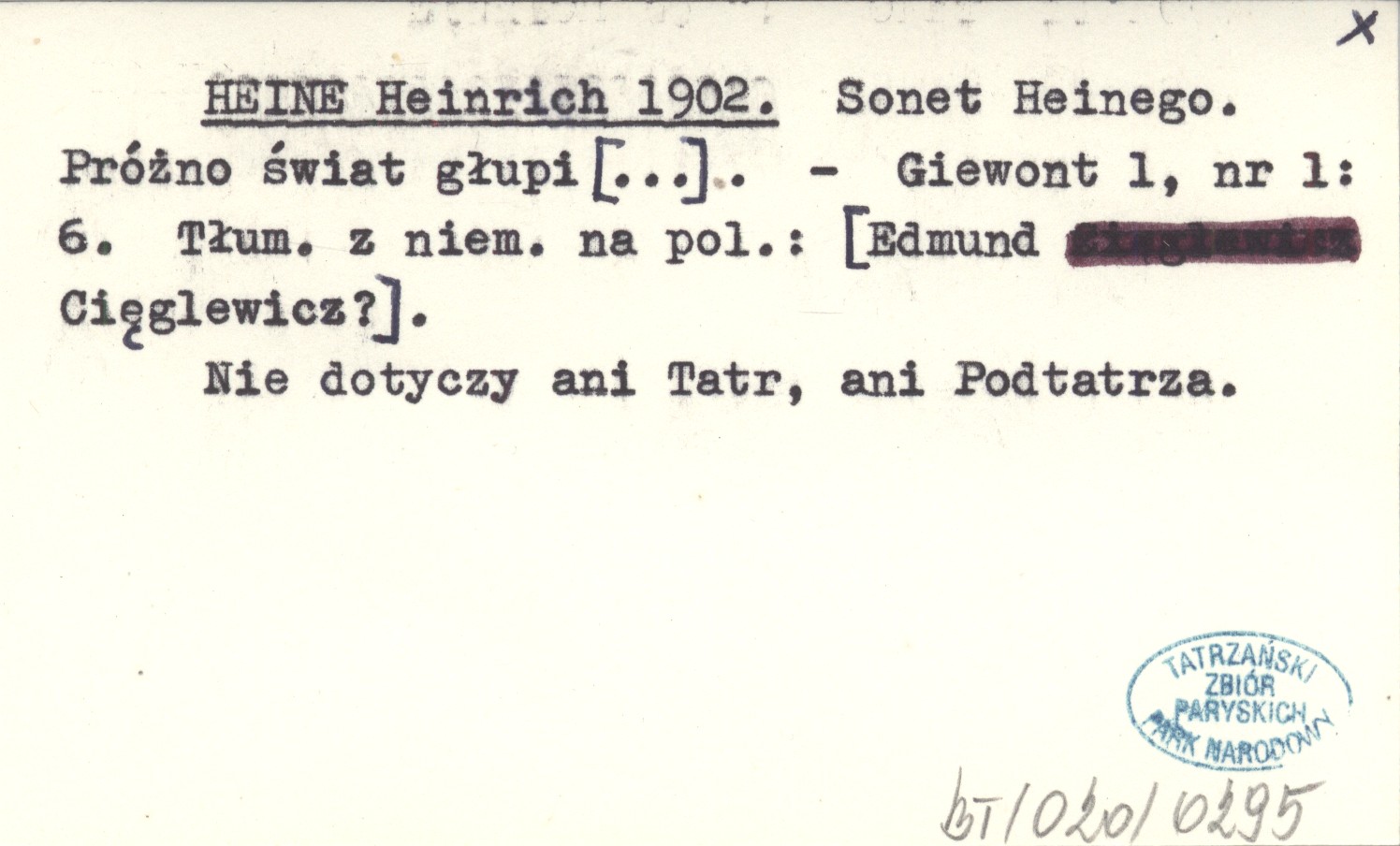 Giewont, 1, nr 1: 6. Nie dotyczy ani Tatr, ani Podtatrza. Tłumaczenie z niemieckiego na polski: [Edmund Cięglewicz?].