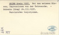 HEINE Erwin 1937 Bei den weissen Riesen. Impressionen von der Tatrawoche.