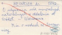 HEINRICH dr. 1842 O używaniu wód mineralnych naturalnych w oddaleniu od źródeł.