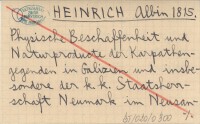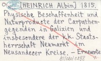HEINRICH Albin 1815 Physische Beschaffenheit und Naturproducte der Karpathengegenden in Galizien und insbesondere der k.k. Staatscherrschaft Neumark im Neusandecer Kreise.