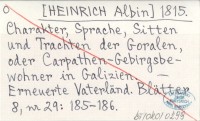 [HEINRICH Albin] 1815 Charakter, Sprache, Sitten und Trachten der Goralen, oder Carpathen-Gebirgsbewohner in Galizien.