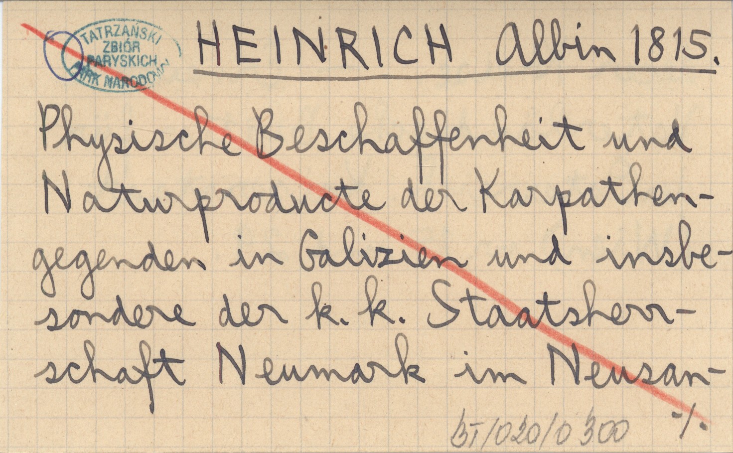 HEINRICH Albin 1815 Physische Beschaffenheit und Naturproducte der Karpathengegenden in Galizien und insbesondere der k.k. Staatscherrschaft Neumark im Neusandecer Kreise.