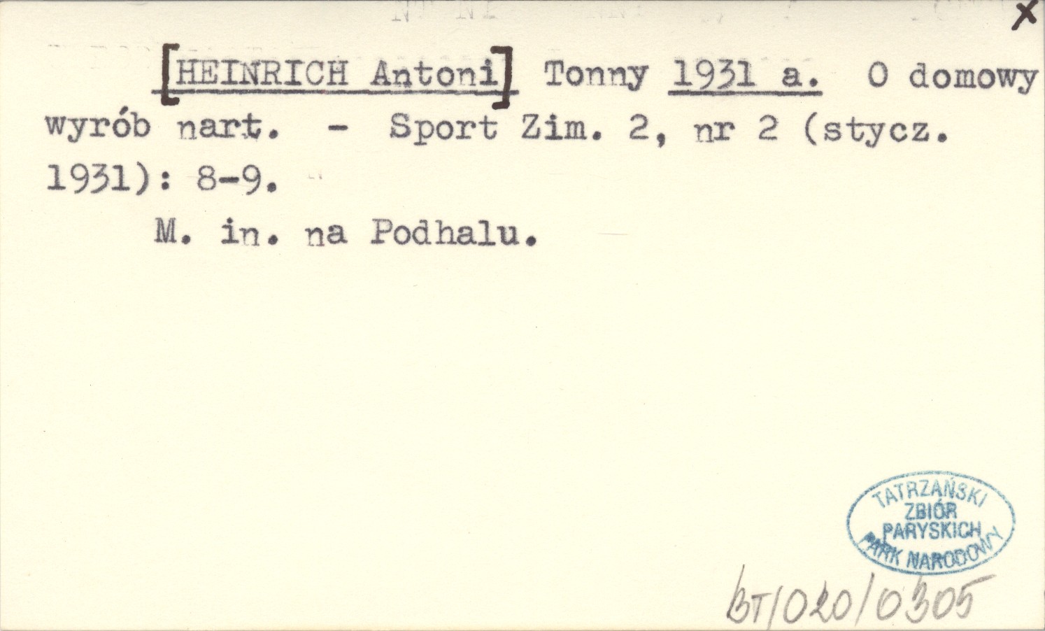 Tonny [HEINRICH Antoni] 1931 a O domowy wyrób nart.