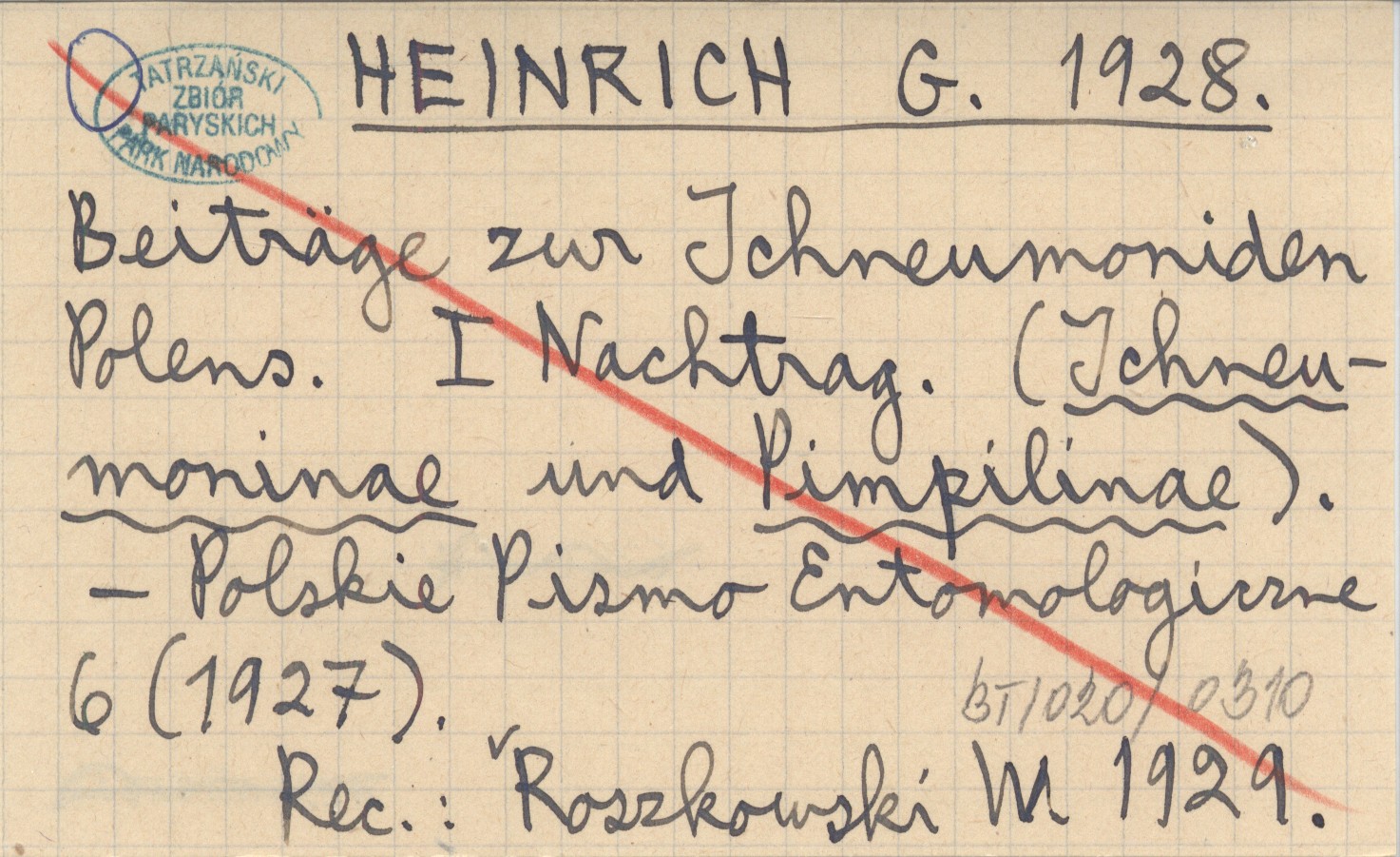 HEINRICH G. 1928 Beiträge zur Ichneumoniden Polens. I Nachtrag. (Ichneumoninae und Pimpilinae).