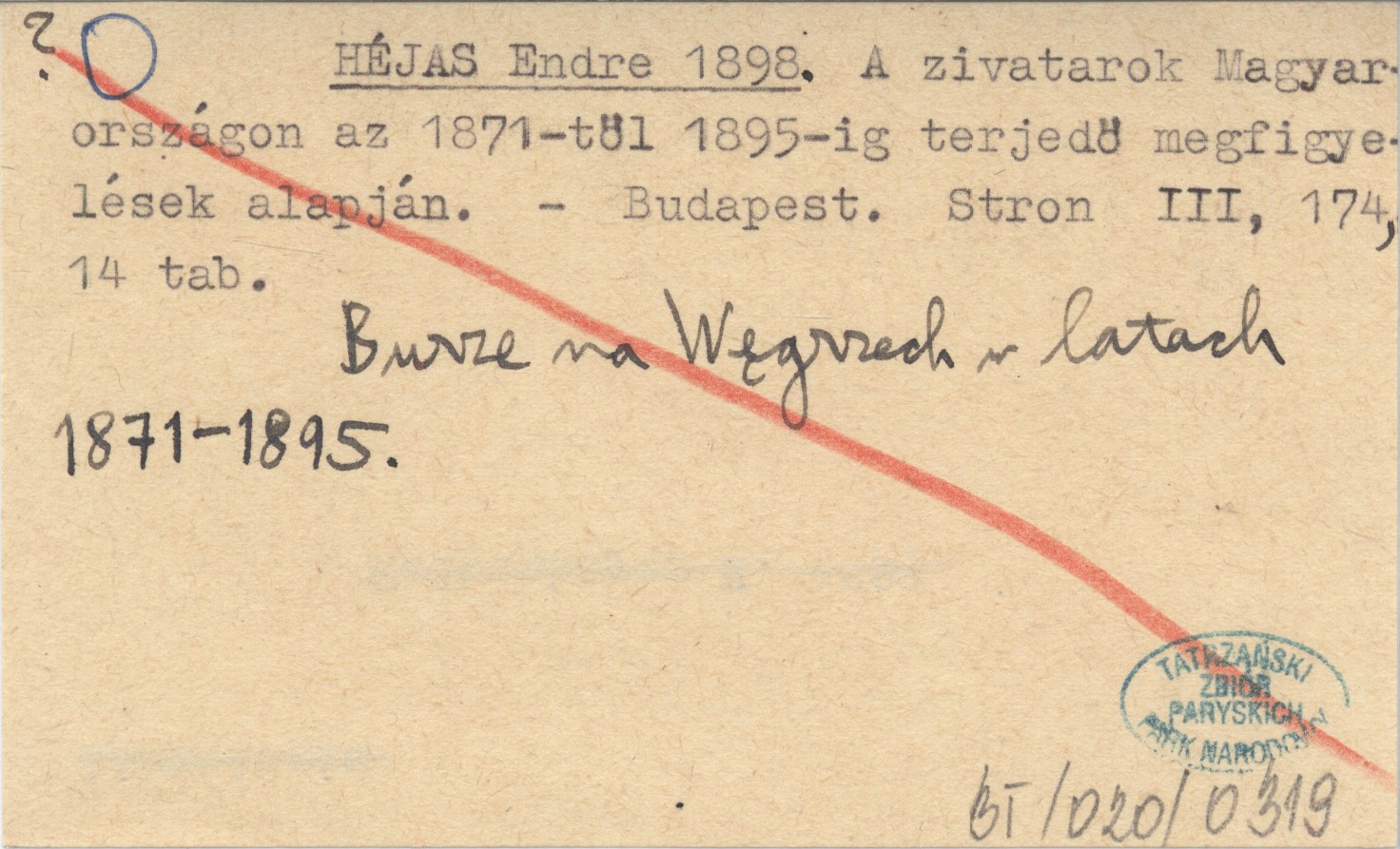 HÉJAS Endre 1898 A zivatarok Magyarországon az 1871-töl 1895-ig terjedő megfigyelések alapján.