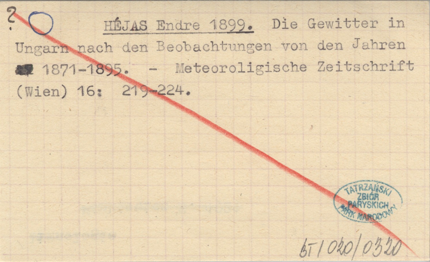 HÉJAS Endre 1899 Die Gewitter in Ungarn nach den Beobachtungen von den Jahren 1871-1895.