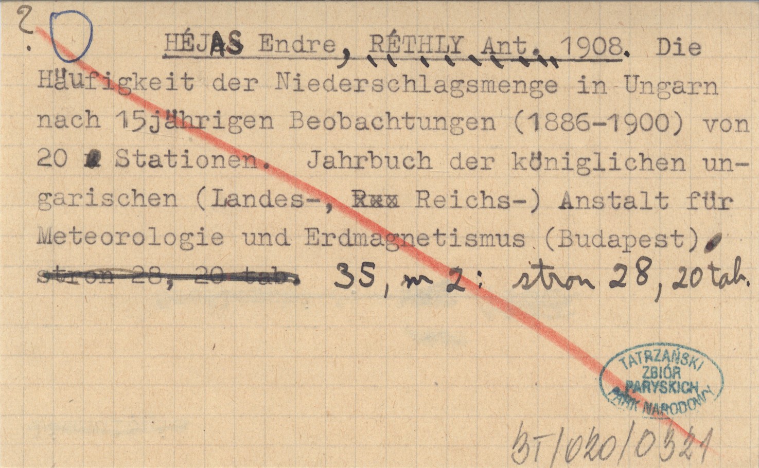HÉJAS Endre RÉTHLY, Ant. ; 1908 Die Häifigkeit der Niederschlagsmenge in Ungarn nach 15 jährigen Beobachtungen (1886-1900) von 20 Stationen. Jahrbuch der königlichen ungarischen (Landes-, Reichs-) Anstalt für Meteorologie und Erdmagnetismus.