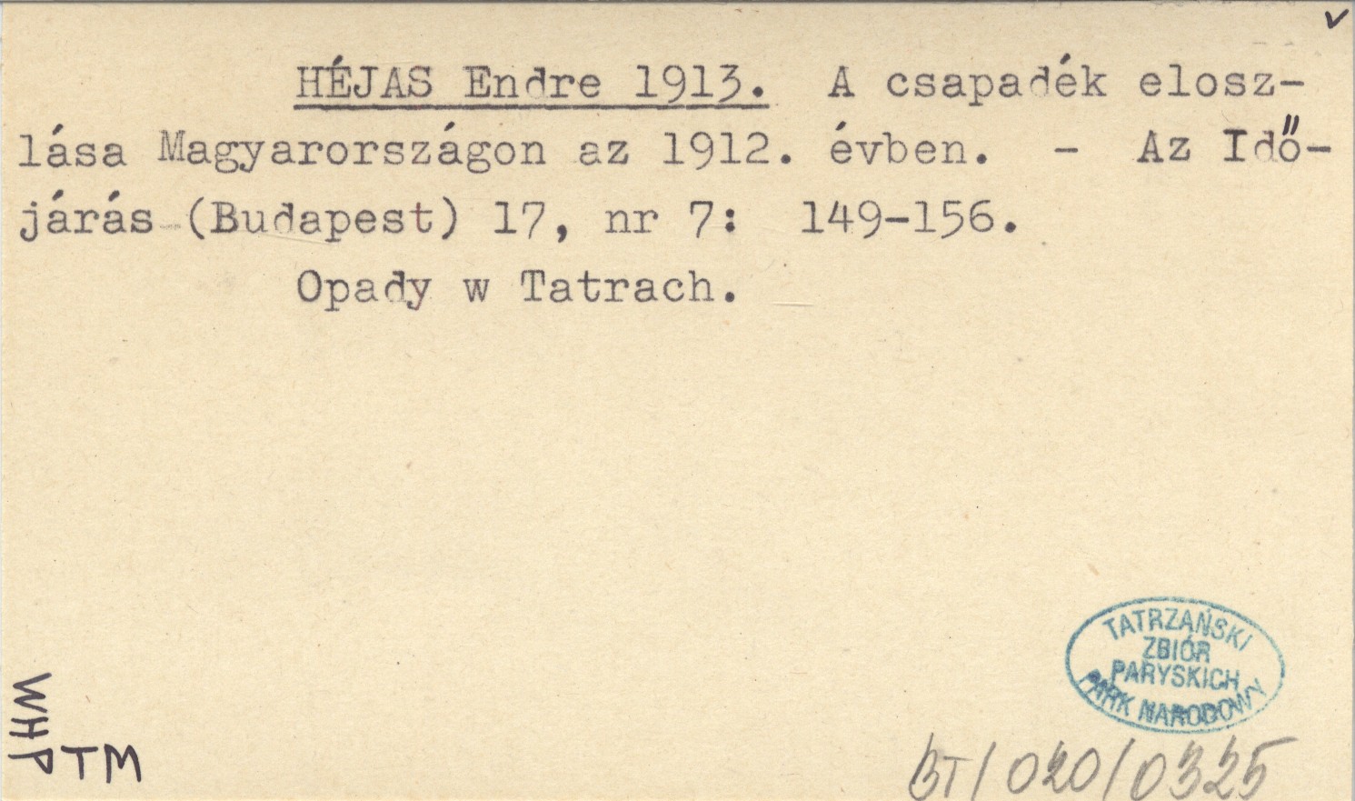 HÉJAS Endre 1913 A cspapadék eloszlása Magyarországon az 1912. évben.