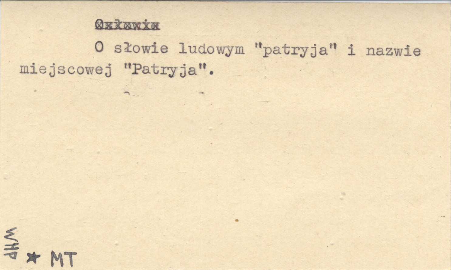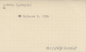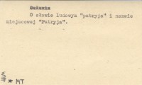 Lud (Wrocław) , 41, cz. 1: 511-517; cz. 2: 1317, 1384-1385. O słowie ludowym "patryja" i nazwie miejscowości "Patryja". Tekst po polsku ze streszczeniem rosyjskim (S. 1317) i angielskim (S. 1384-1385).