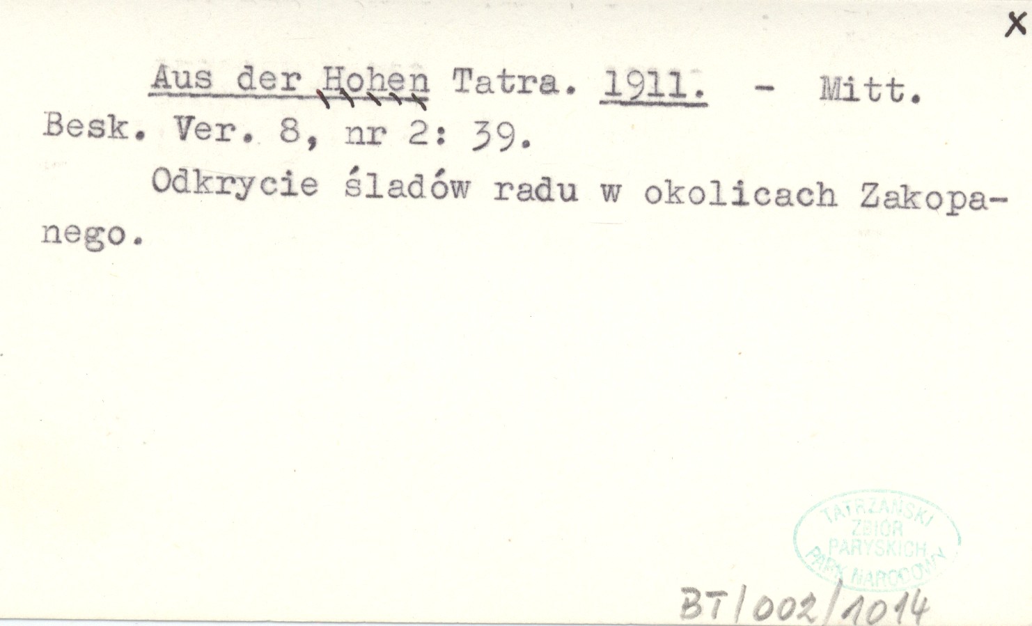 Mitteilungen des Beskidenvereines, 8, nr 2: 39. Odkrycie śladów radu w okolicach Zakopanego.