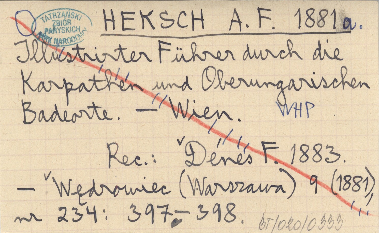 HEKSCH A. F. 1881 a Illustrirter Führer durch die Karpathen und Oberungarischen Badeorte.