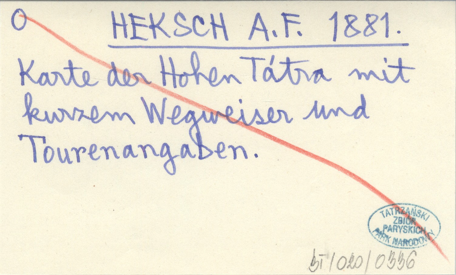 HEKSCH A. F. 1881 Karte der Hohen Tátra mit kurzem Wegweiser und Tourenangaben.
