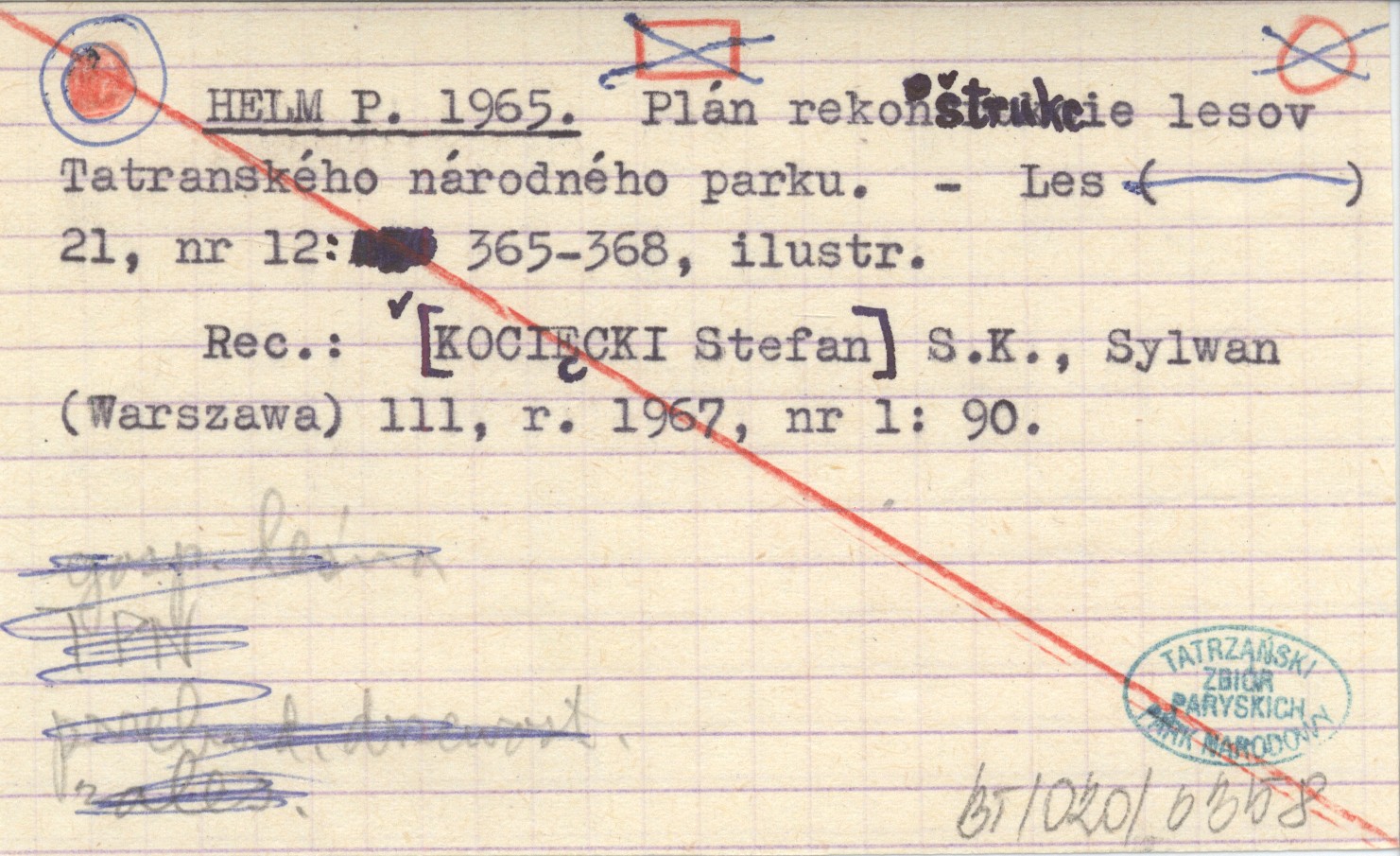 HELM Pavol 1965 Plán rekonštrukcie lesov Tatranského národného parku.