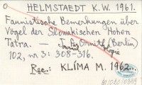 HELMSTAEDT K. W. 1961 Faunistische Bemerkungen über Vögel der Slowakischen Hohen Tatra.