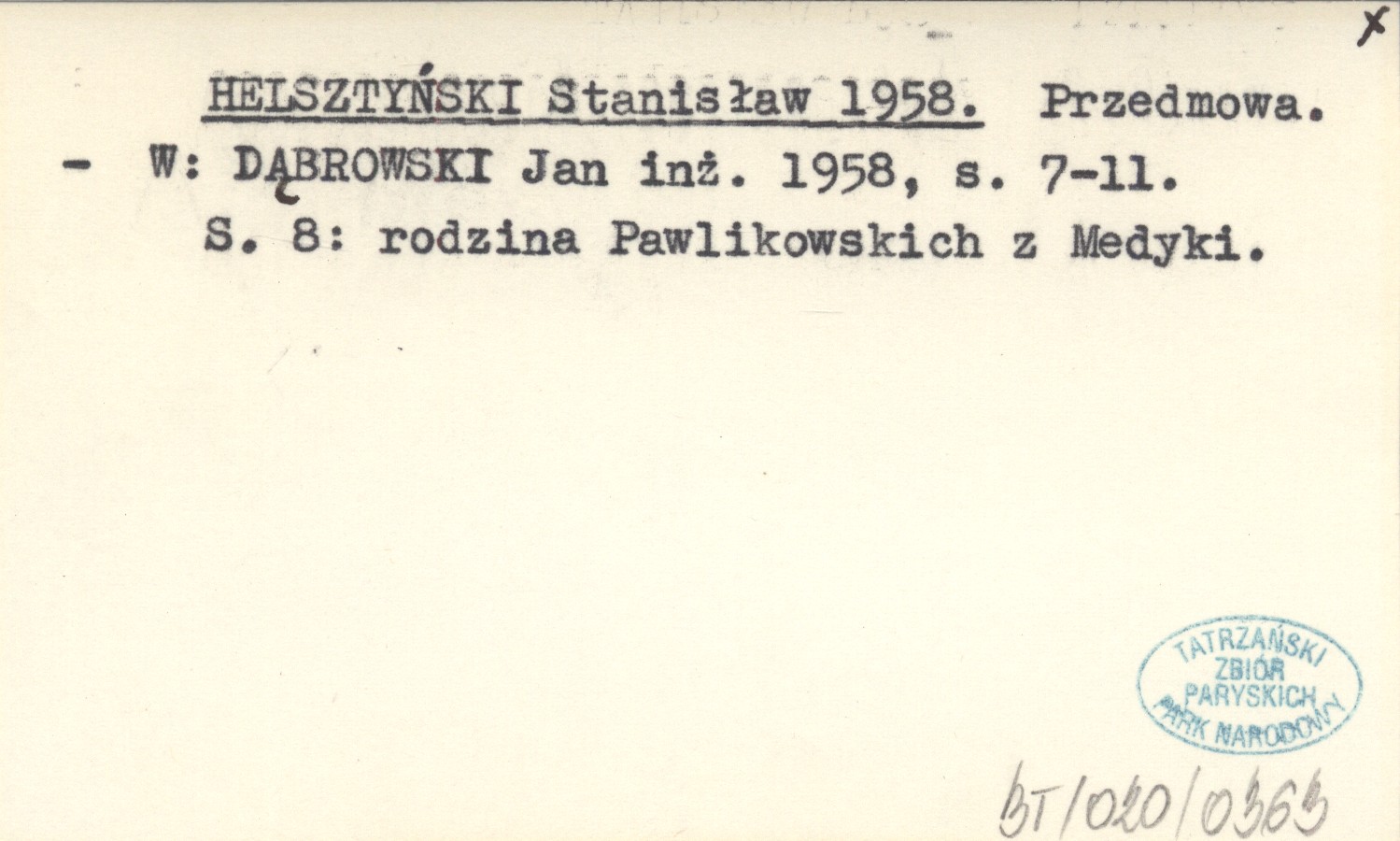 DĄBROWSKI Jan inż. 1958, S. 7-11. , S. 8: rodzina Pawlikowskich z Medyki.