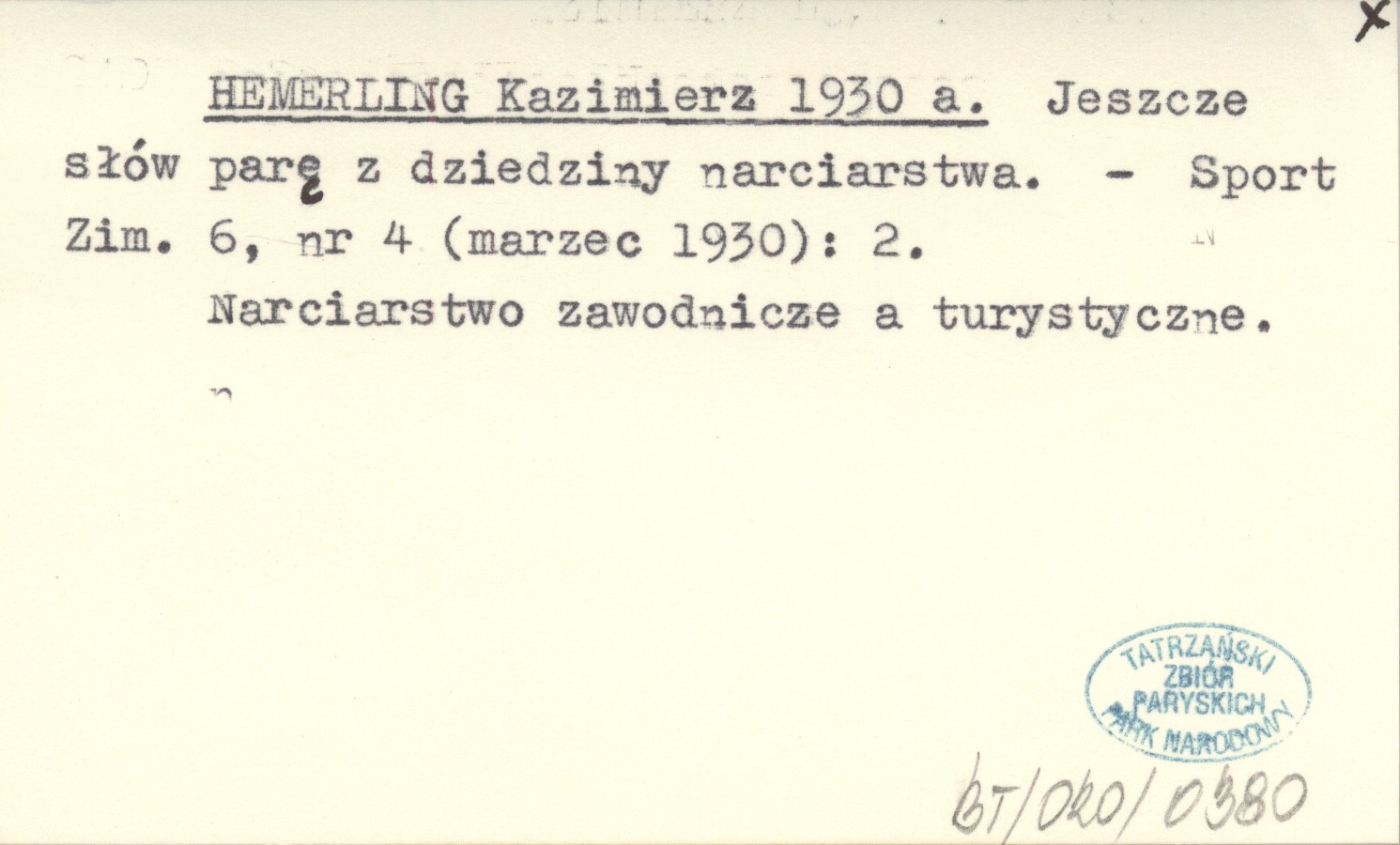 HEMERLING Kazimierz 1930 a Jeszcze słów parę z dziedziny narciarstwa.