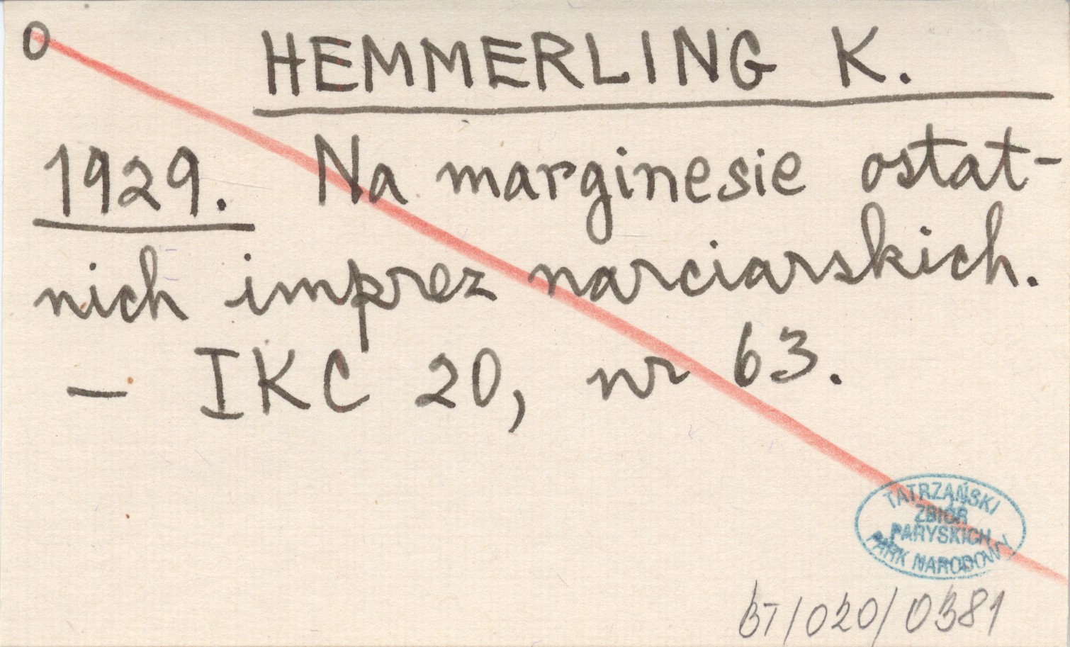 HEMMERLING K. 1929 Na marginesie ostatnich imprez narciarskich.