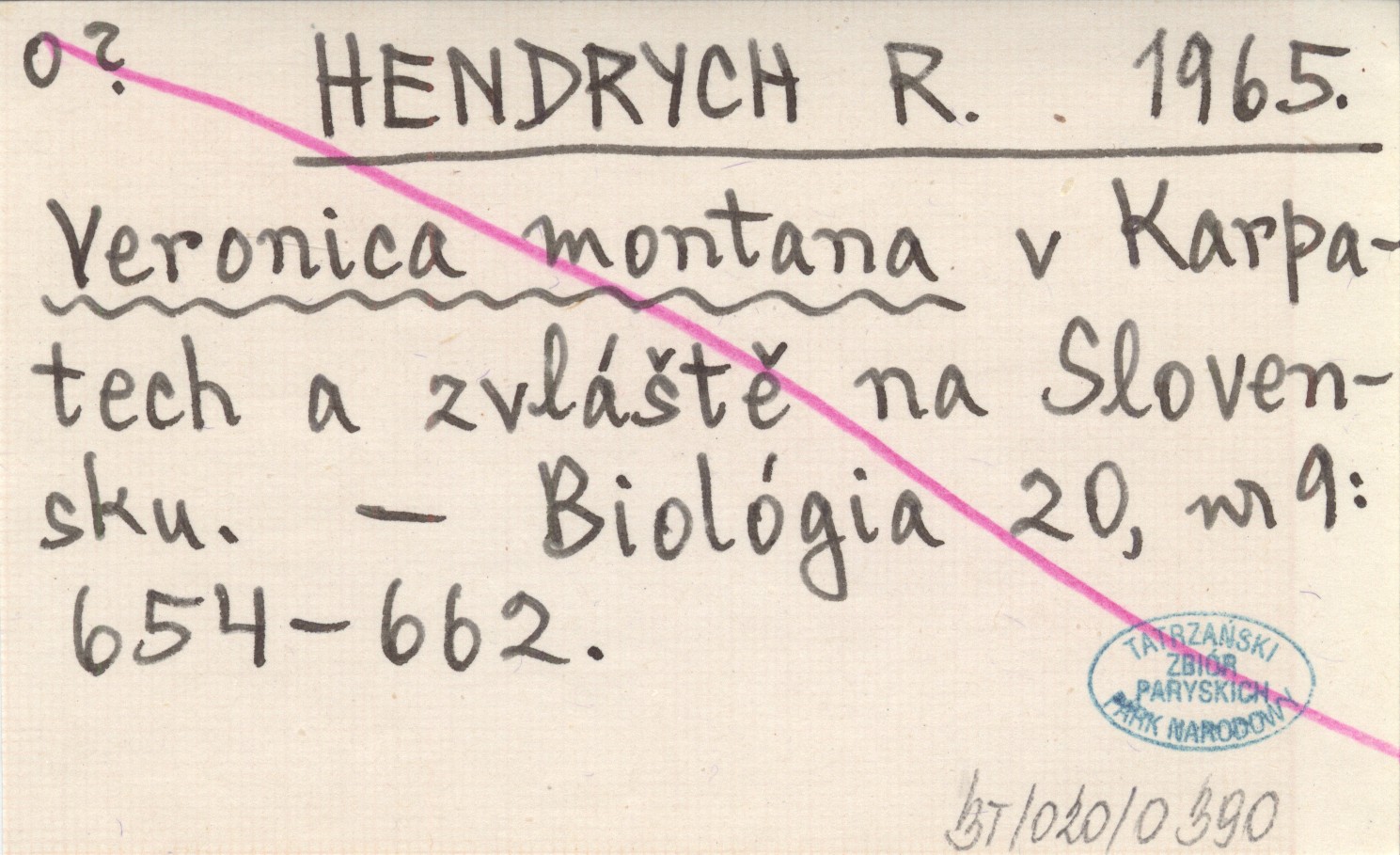 HENDRYCH R. 1965 Veronica montana v Karpatech a zvláště na Slovensku.