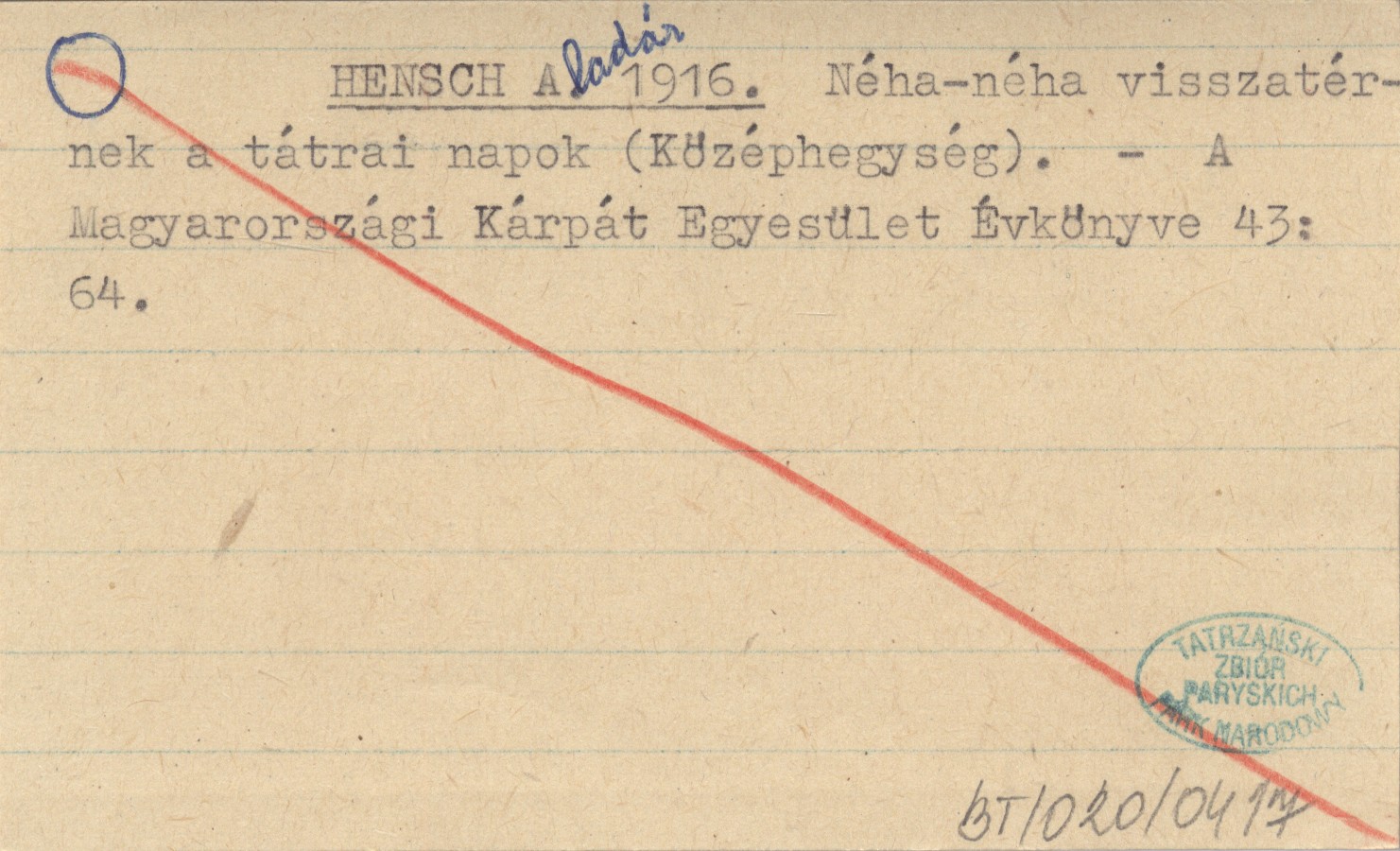 HENSCH Aladár 1916 Néha-néha visszatérnek a tátrai napok (Középhegység).