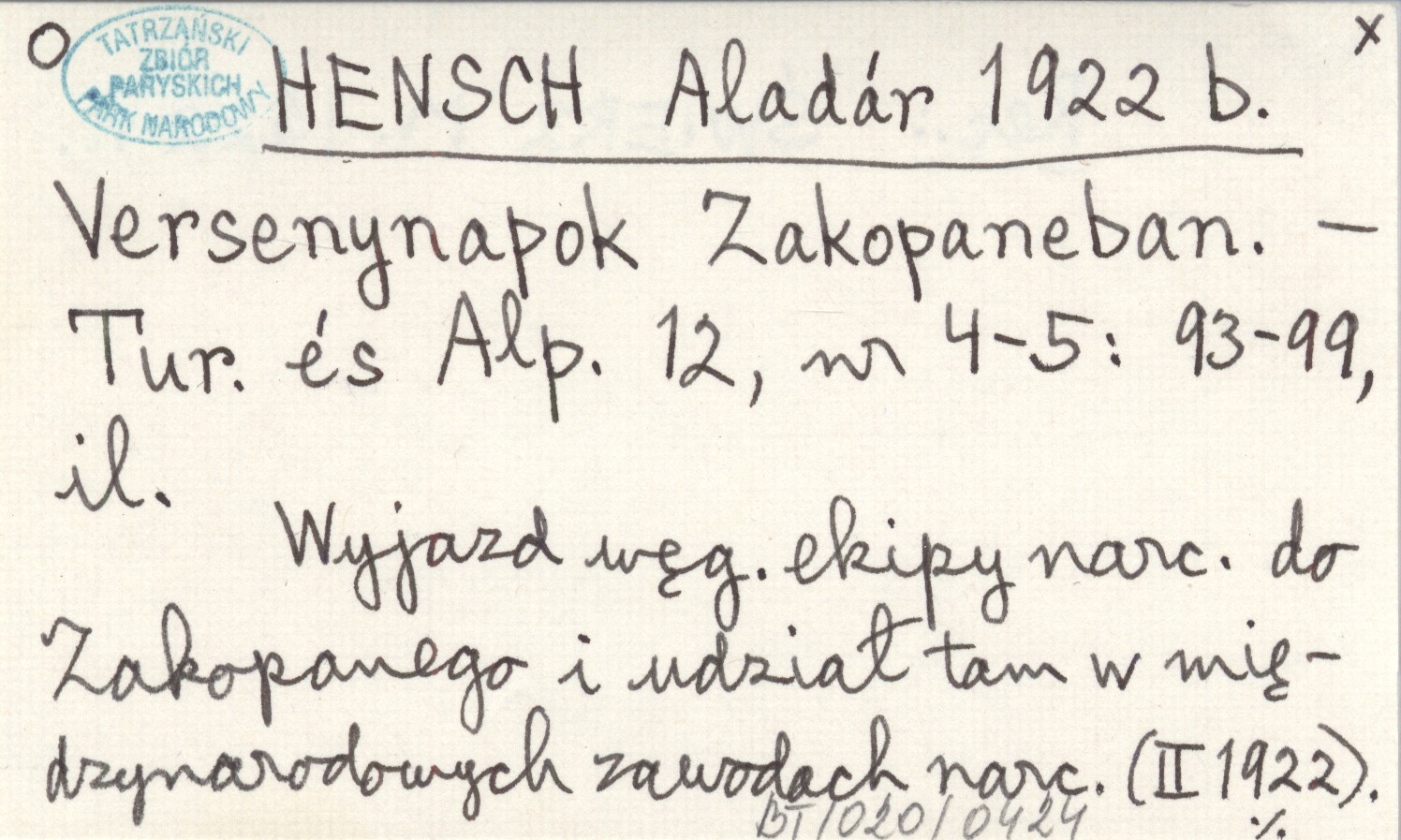 Turistaság és Alpinizmus, 12, nr 4-5: 93-99, il. Wyjazd węgierskiej ekipy narciarskiej do Zakopanego i udział tam w międzynarodowych zawodach narciarskich (II 1922). REC: ŚWIERZ M. 1922 n.